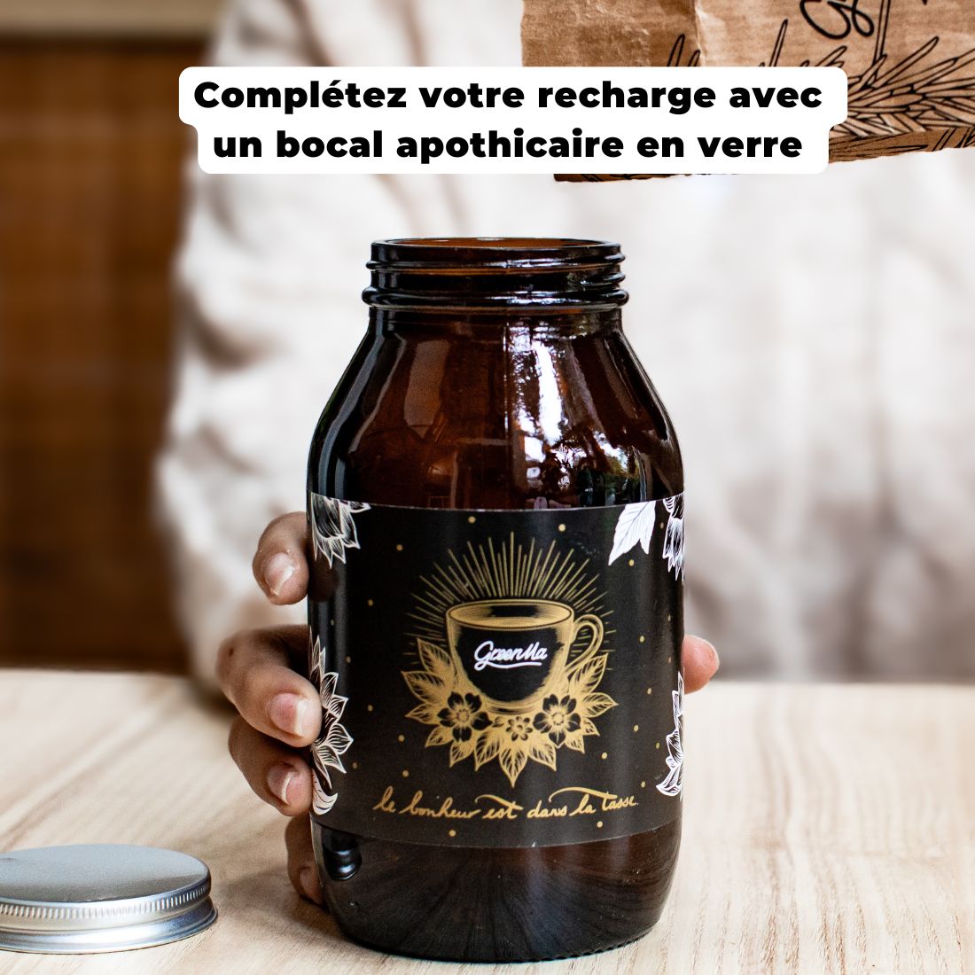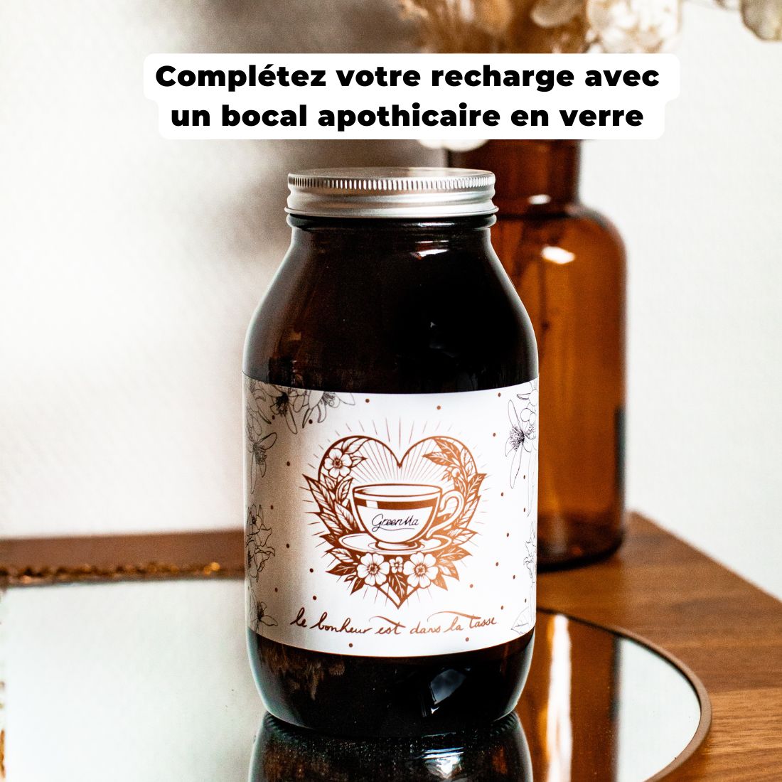 Grand Bocal vide apothicaire en verre fumé doré mode « ex voto ». Nous vous conseillons de les vendre avec les recharges pour un contenant chic et original.